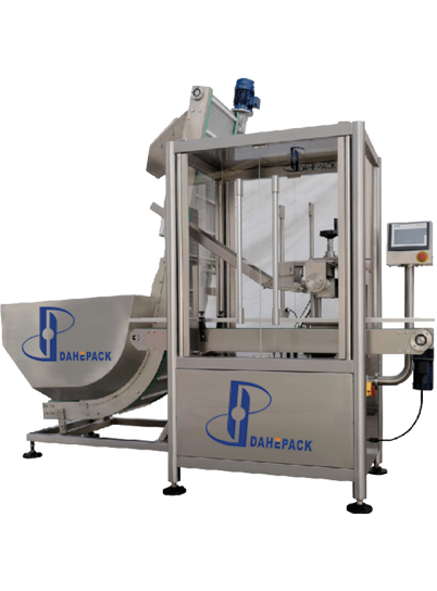 整機(jī)主體不銹鋼結(jié)構(gòu),有機(jī)玻璃外罩,可打開(kāi); PLC控制、觸摸屏人機(jī)界面顯示,操作簡(jiǎn)便; 儲(chǔ)蓋料斗底部的爬坡輸送帶自動(dòng)理蓋,方向?qū)Φ南蛏咸幔较蚍吹淖詣?dòng)跌落到儲(chǔ)蓋料斗;